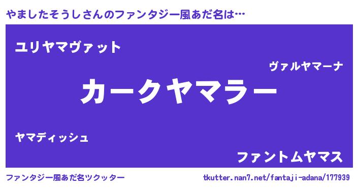| 男性向けラノベタイトル風あだ名 | 『やましたそうしに滅ぼされるだけの簡単なお仕事です』 |