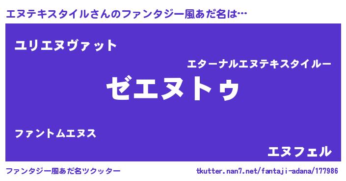 | ヒーロー風カッコイイあだ名 | 『超時空戦士エヌテキスタイル』 |