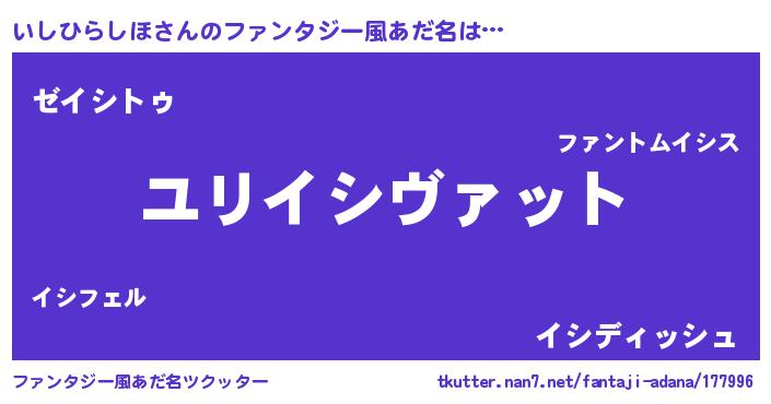 | ヒーロー風カッコイイあだ名 | 『最強戦士イシヒラシホ』『銀牙騎士イシ』 |