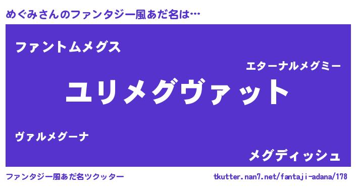 | ヘコむあだ名 | 『めぐお』『めぐみ(震え声)』 |