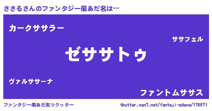 | ヒーロー風カッコイイあだ名 | 『超時空戦士ササル』『黄金騎士ササ』 |