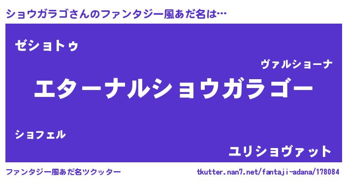 | 意味不明あだ名 | 『ショウガラゴフォーエバー』 |