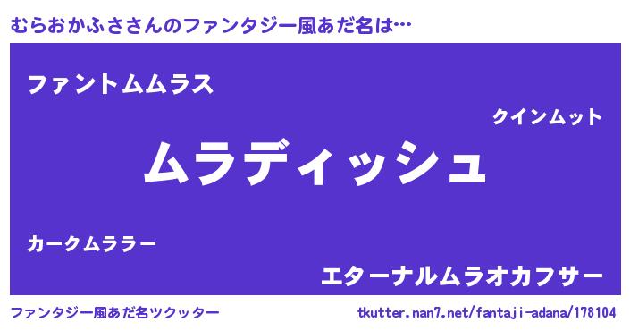 | 意味不明あだ名 | 『永久保存むらおかふさ』 |