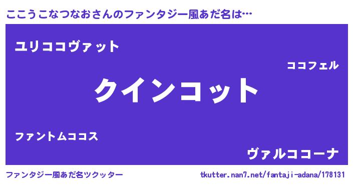 | 欧米人風あだ名 | 『アンジェラ・ここうこなつなお』 |