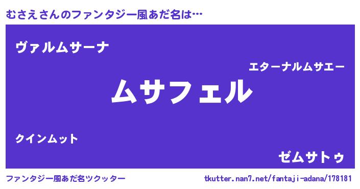 | ポケモン風あだ名 | 『ムサチュウ』『ムーサイ』 |