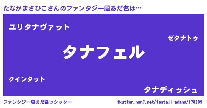 | 男性向けラノベタイトル風あだ名 | 『たなかまさひこの憂鬱』 |