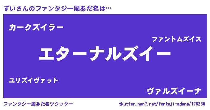 | 男性向けラノベタイトル風あだ名 | 『ずいに滅ぼされるだけの簡単なお仕事です』 |