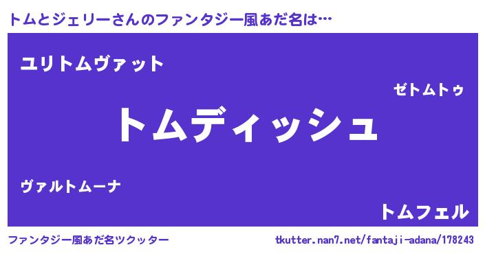 | ヘコむあだ名 | 『トムとジェリー(震え声)』『トムっふぃ~』 |