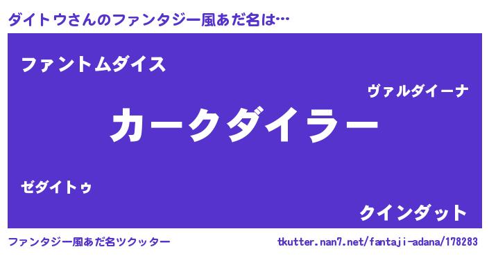 | ヒーロー風カッコイイあだ名 | 『天弓騎士ダイ』『愛の使者ダイトウ』 |