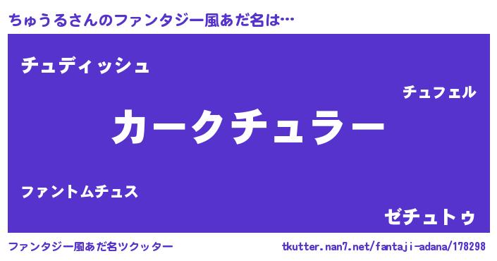 | ヘコむあだ名 | 『ちゅうる(小並感)』『ちゅにー』 |
