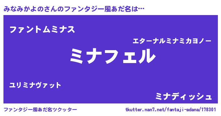 | ポケモン風あだ名 | 『ミナチュウ』『ヒミナミカヨノ』 |