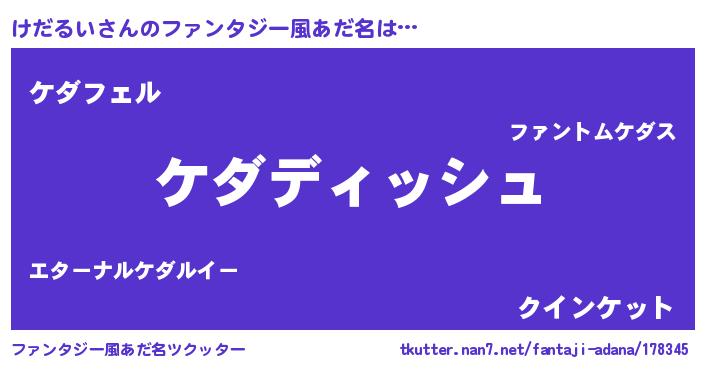 | ヘコむあだ名 | 『けだるい(遠い目)』『けだっふぃ~』 |
