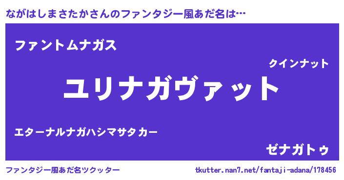 | 男性向けラノベタイトル風あだ名 | 『転生したらながはしまさたかだった件』 |