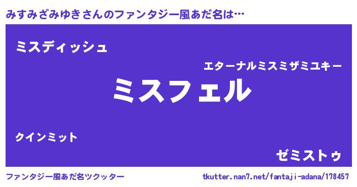 | 男性向けラノベタイトル風あだ名 | 『みすみざみゆきの憂鬱』 |