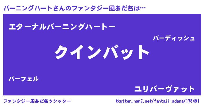 | ヒーロー風カッコイイあだ名 | 『正義の使者バーニングハート』 |