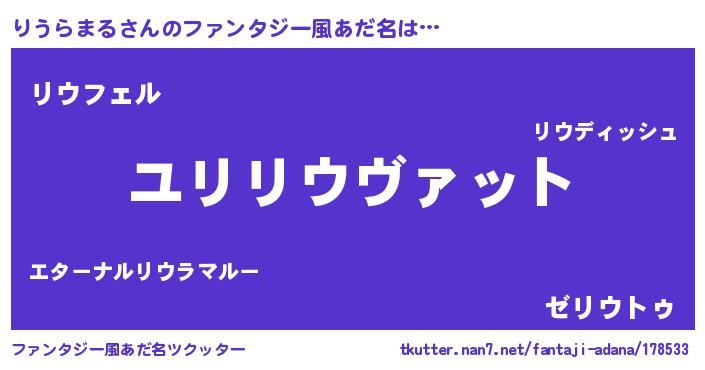 | ヘコむあだ名 | 『りうにー』『りうらまる(笑)』 |