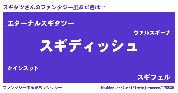 | ヒーロー風カッコイイあだ名 | 『ネオスギタツ』『ウルトラスギタツマン』 |