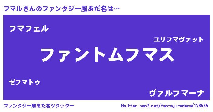 | 意味不明あだ名 | 『とにかく怪しいフマル』『自称フマル』 |