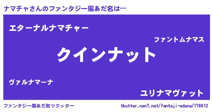 | ヒーロー風カッコイイあだ名 | 『天空の使者ナマチャ』『魔戒騎士ナマ』 |
