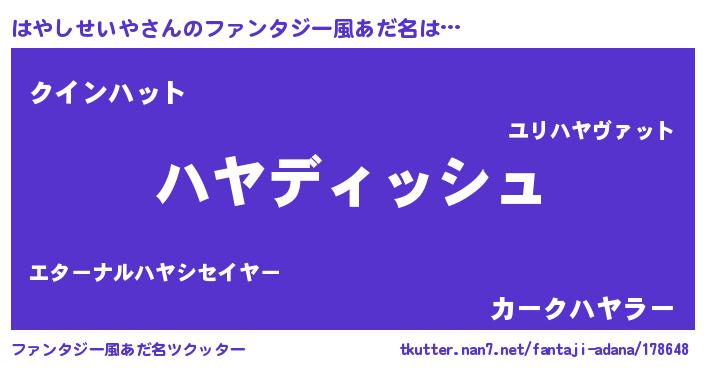 | ヒーロー風カッコイイあだ名 | 『ネオハヤシセイヤ』『魔戒騎士ハヤ』 |