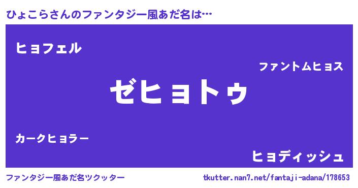 | 男性向けラノベタイトル風あだ名 | 『Re:ひょこらから始める異世界生活』 |