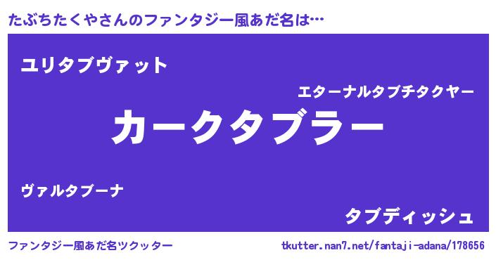 | 胡散臭い通販商品みたいなあだ名 | 『絶対に幸福をもたらす健康食品…その名も「たぶちたくや」』 |