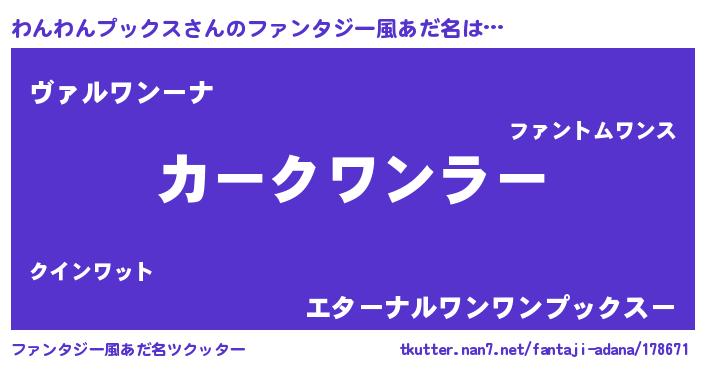 | 胡散臭い通販商品みたいなあだ名 | 『ハリウッド女優が絶賛した100年もののヴィンテージワイン…その名も「わんわんプックス」』 |