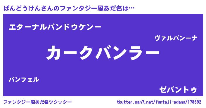 | 男性向けラノベタイトル風あだ名 | 『ばんどうけんに滅ぼされるだけの簡単なお仕事です』 |
