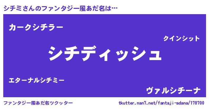 | 男性向けラノベタイトル風あだ名 | 『シチミという概念が存在しない退屈な世界 』 |