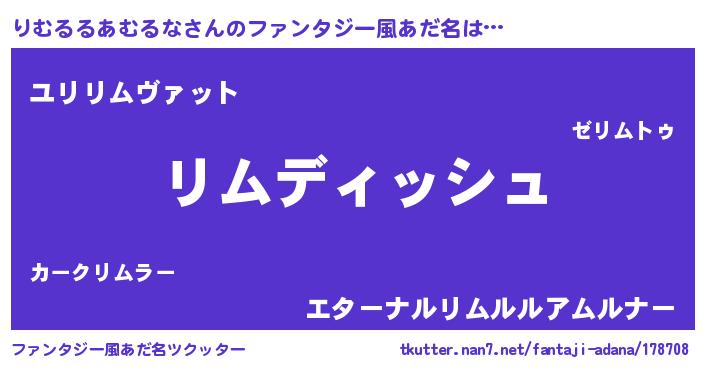 | 男性向けラノベタイトル風あだ名 | 『はたらくりむるるあむるなさま!』 |