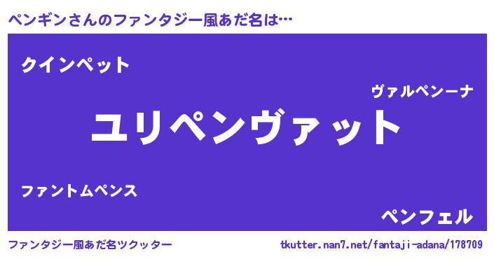 | 男性向けラノベタイトル風あだ名 | 『転生したらぺンギンだった件』 |