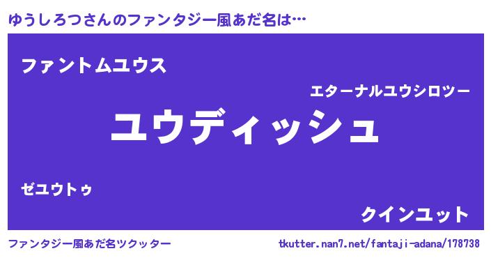 | 男性向けラノベタイトル風あだ名 | 『ゆうしろつという概念が存在しない退屈な世界 』 |