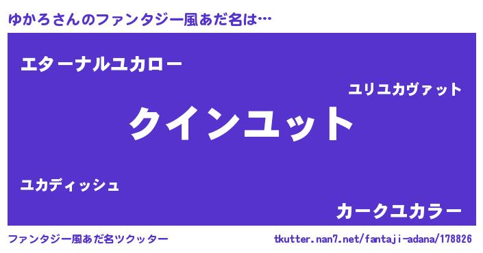 | ポケモン風あだ名 | 『ユカゴンZ』『ユックウザ』 |