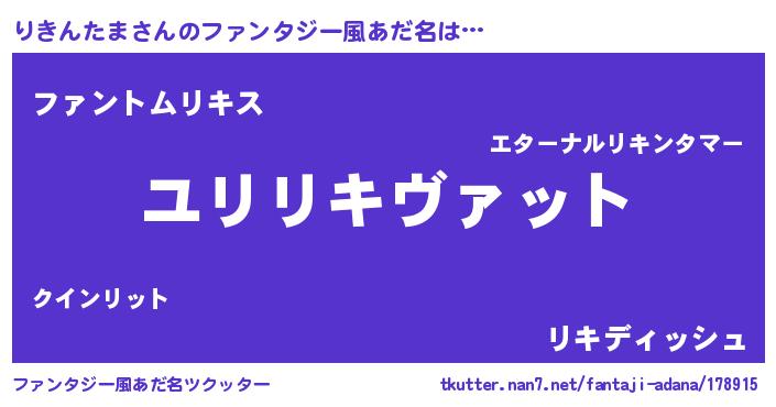 | 男性向けラノベタイトル風あだ名 | 『りきんたま~年齢イコール彼女いない歴の魔法使い~』 |