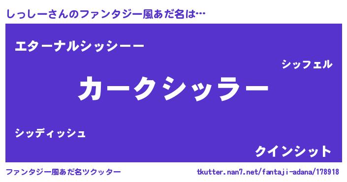 | 男性向けラノベタイトル風あだ名 | 『緋弾のシッシー』 |