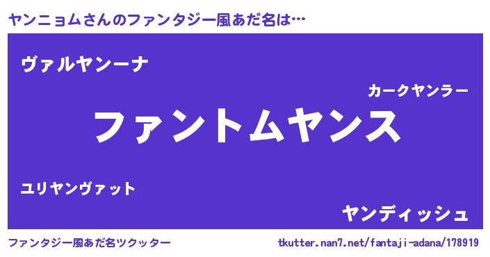 | ポケモン風あだ名 | 『ヒヤンニョム』『ヤーンイ』 |