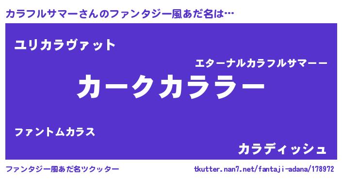 | 胡散臭い通販商品みたいなあだ名 | 『来世でも幸せになれる健康食品…その名も「カラフルサマー」』 |