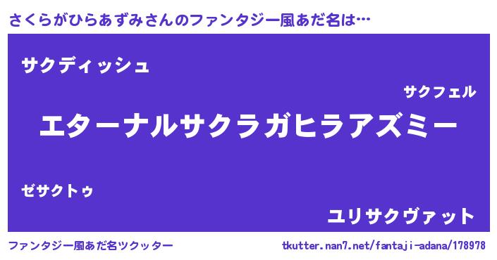 | 意味不明あだ名 | 『さくらがひらあずみフォーエバー』 |