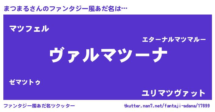 | 男性向けラノベタイトル風あだ名 | 『この素晴らしい世界にまつまるを!』 |