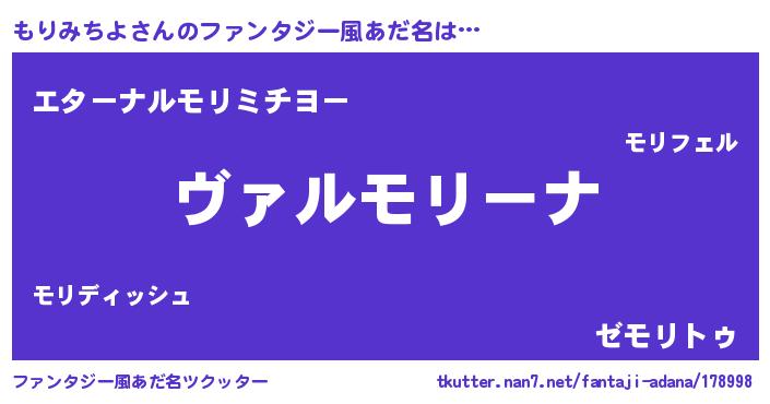 | 男性向けラノベタイトル風あだ名 | 『魔弾の王ともりみちよ』 |