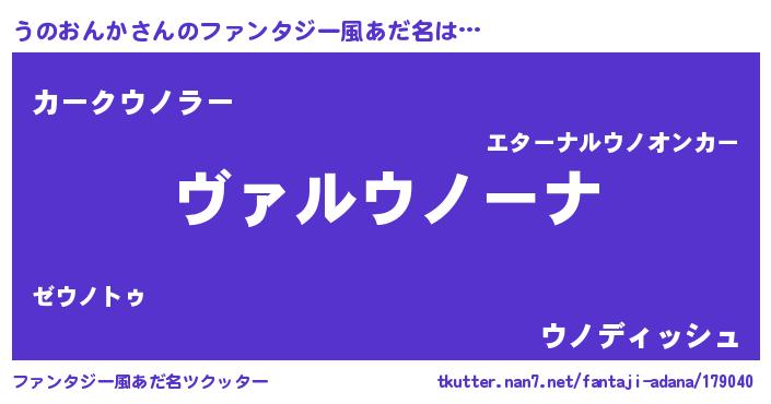 | 男性向けラノベタイトル風あだ名 | 『うのおんかに滅ぼされるだけの簡単なお仕事です』 |