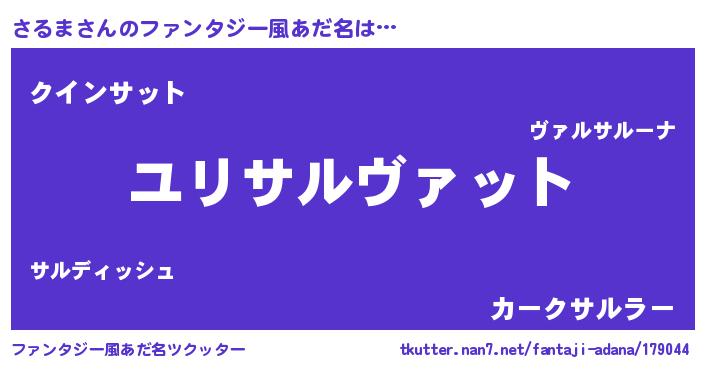 | 男性向けラノベタイトル風あだ名 | 『サルマスレイヤー』『魔弾の王とさるま』 |