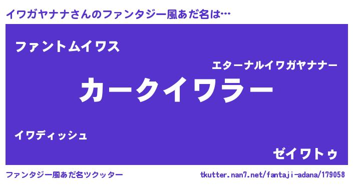 | ヒーロー風カッコイイあだ名 | 『暗黒騎士イワ』『究極戦士イワガヤナナ』 |