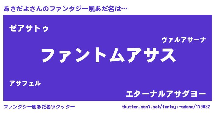 | 意味不明あだ名 | 『とにかく怪しいあさだよ』 |
