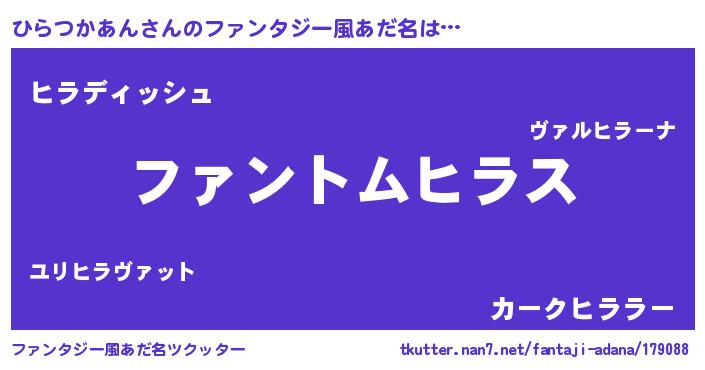 | 男性向けラノベタイトル風あだ名 | 『ダンジョンにひらつかあんを求めるのは間違っているだろうか』 |