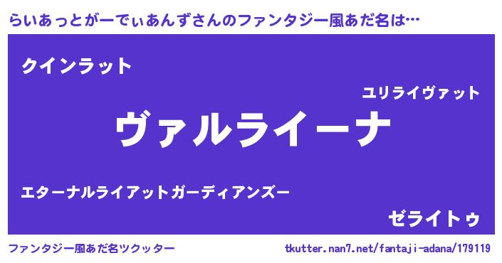 | 男性向けラノベタイトル風あだ名 | 『この素晴らしい世界にらいあっとがーでぃあんずを!』 |
