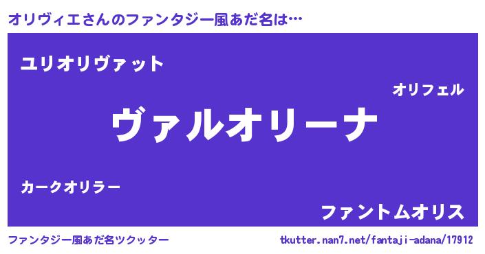 | 男性向けラノベタイトル風あだ名 | 『魔弾の王とオリヴィエ』 |