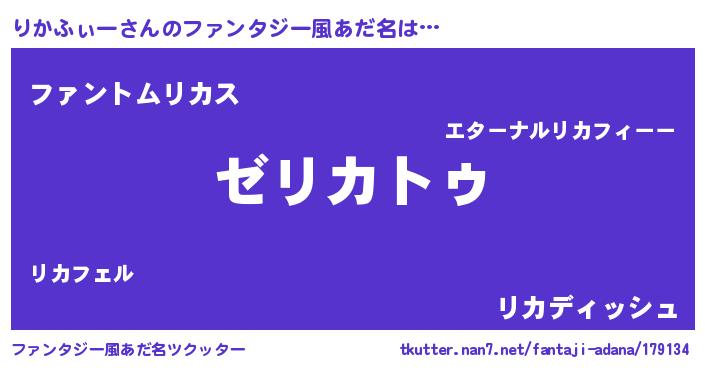 | 男性向けラノベタイトル風あだ名 | 『Re:りかふぃーから始める異世界生活』 |