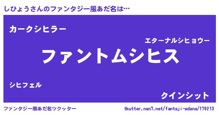 | 自動車の名前っぽいあだ名 | 『シント』『フェシーヒ』『フィッシ』 |