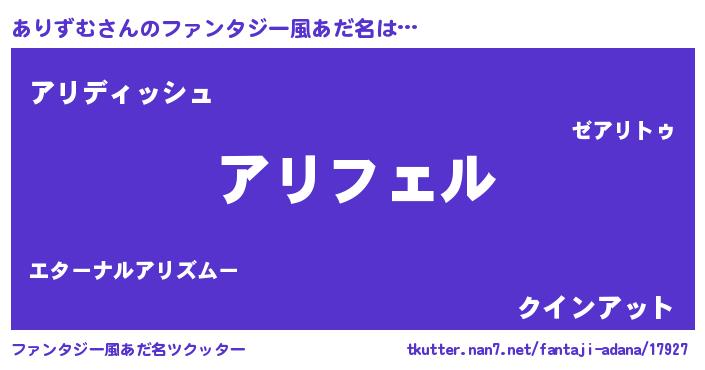 | 恥ずかしいあだ名 | 『プリティーありずむ』『ありちん』 |